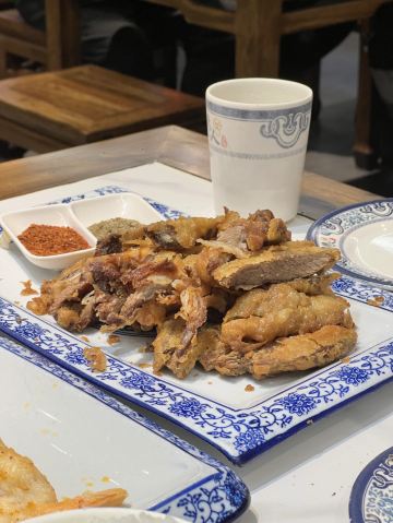 京酱肉丝,老北京炸酱面,炸灌肠,老北京爆肚,三爷香酥鸡,小馆桂花酸奶