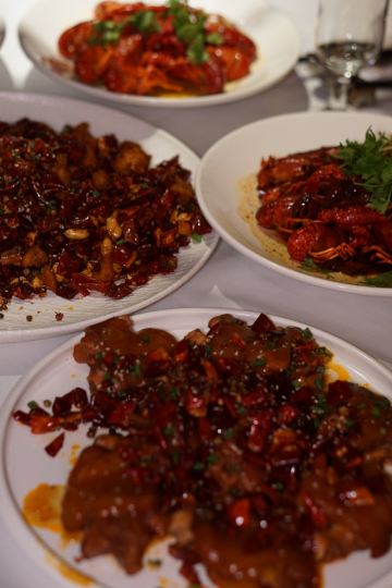 这顿小龙虾在这里吃,水晶灯吊顶、裱花餐盘、高脚杯竹藤椅,环境大气适合请客,服务也周到加分。蒜蓉金汤小龙虾汤汁浓郁金亮亮的,超诱人,虾肉弹嫩润白,蘸汤吃不得了,里面的藕片挂满蒜蓉也超香,甚至可以单飞成一道金汤藕片。其他也都发挥不错,几乎不踩雷的店。