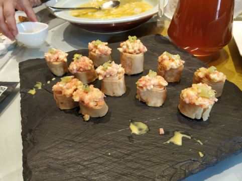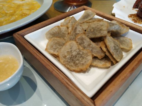 dangdang终于吃上四季民福了! 终于喝到真正的豆汁了! 这周末的家宴定在新开的这家四季民福,让我很是惊喜。环境方面,整得很不错,老北平风,服务特别到位,很值得称赞!就是停车位太少,而且堵车非常严重。 回正题,他家的京菜,家常菜做得都非常好。隆重推荐的是,,,,,豆汁!妈呀,一提起来我还真不敢相信,在有生之年还能喝到这么正宗的豆汁儿!现在各家的豆汁儿,都改良过了,只有一股酸味儿。记忆中的豆汁儿,应该是自内而外透着那么一股子酸臭,这要发酵到恰到好处才行。现在人都功利,不肯这么做了。所以,能喝到它家这样的豆汁儿,真心不易,感谢老板,感谢大厨! 鸭血旺,川菜嘛,居然做得很好,食材好,烹饪佳,没让辣味遮了食材的味道。 蜜汁脆皮虾,真的很好吃,主要是食材好。要吃趁热。 石磨豆腐,真的好吃,不用多说。蘸的酱汁非常棒! 炸灌肠,不正宗但是推荐。正宗炸灌肠应该单面煎,他家双面,但是切出三角块来,煎得火候也到位。所以我还是强烈推荐。 芒果三文鱼咯吱盒,就冲着这种搭配,想不好吃都难。 最后说不好的菜:两道最贵的硬菜,烤鸭和糖醋黄鱼(好像是这个名字),都让我大失所望。烤鸭居然会有点儿腥。加上师傅皮肉分离的片法,使得鸭皮既干且硬,真心不喜欢。黄鱼则败在不新鲜,而且炸得特别硬,实在是很难吃。