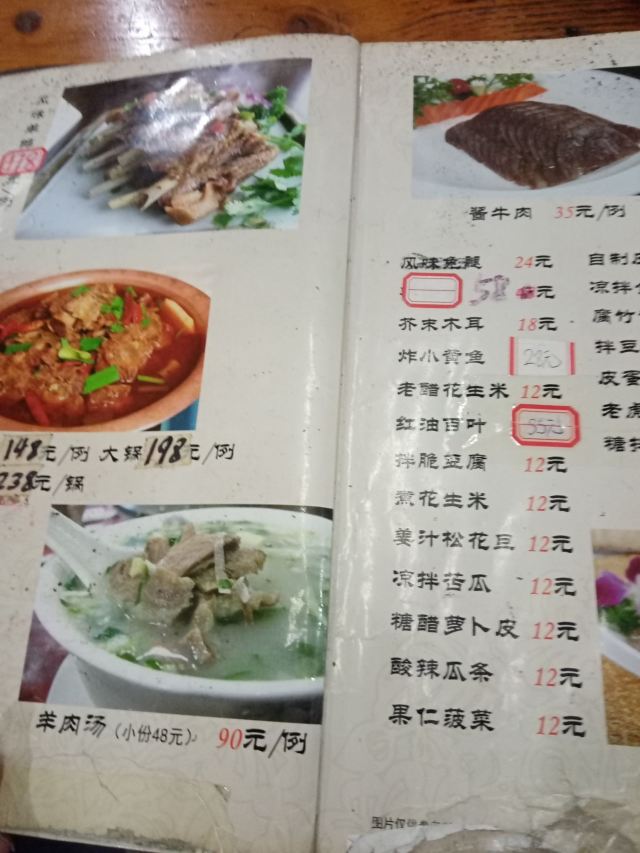 宫保鸡丁,炸平菇,爆肚,手撕包菜,糖醋里脊,软炸虾仁,水煮牛肉,孜然羊肉,酱肘子,软炸蘑菇,羊肉串,烤串,花蛤,鱼香肉丝,醋溜土豆丝,烧茄子,羊肉