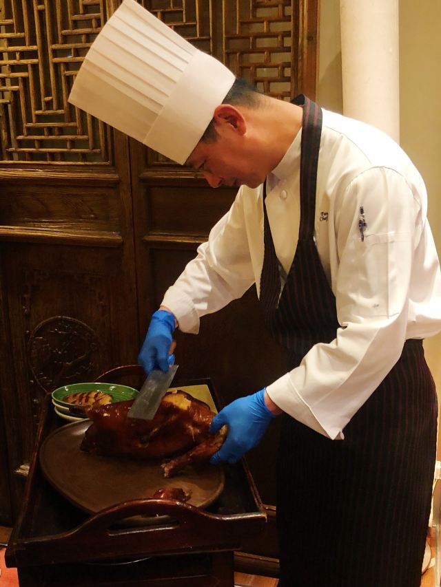 凯悦系餐厅里比较受消费者喜欢的一家餐饮,最近好像荣膺米其林餐盘推荐! 很多朋友都在推荐他们家的“果木烤鸭”,今天一试,确实可以,果木挂炉现烤,不过需要提前预订,二个人建议半只,如果特别喜欢的话,那就另当别论了! 提前预约的到店时间,服务在线,餐厅位于东方君悦酒店一楼,交通比较便利,整体就餐下了,印象最深的就是烤鸭和服务!