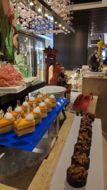 Cafe Vista - Wanda Vista Beijing中国餐厅周难道不是提供给餐厅一个宣传展示获取回头客的机会吗? 但是万达文华的自助餐148一位,比正常价格虽然便宜一点,可是菜品也太low了,其实同样价位,很多酒店菜式都比他们强多了。和豪华酒店的身份完全不匹配。一进门被要求只能坐一个区域,靠窗的都不能座(还好那天天气不好,没什么风景可看)后来发现有开会的团队坐了那些位置。这就开始减分。然后转了一圈菜品,彻底凉凉。没找到什么上点档次的食材,以中式热菜为主,大部分就是员工食堂大锅菜那种。各种鸡肉,连宫保鸡丁都上了,没有牛肉,没有羊肉,更别提一般自助餐都有的牛排羊排,唯一的牛肉是凉的牛肉火腿片,本来想吃碗汤面算了,做完居然是黏糊糊的打卤面,难以下咽。呵呵!,只有冷菜的青口和扇贝看着还行。唯一与酒店星级能匹配的是甜品饮料区,小甜点种类很多,摆的也很好看。咖啡是现做的,做咖啡的服务员挺客气。这钱就当吃顿下午茶吧。想想那些热菜,也真是醉了。。。