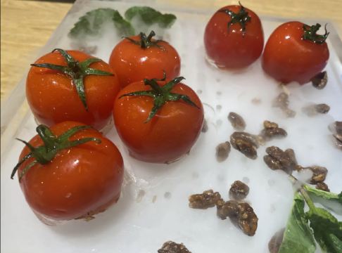 酥不腻烤鸭,鸭汤,番茄脆菇沙拉,樱桃鹅肝,奇妙虾球,小大董凉皮,冰淇淋,棉花糖,烤鸭酱料,“酥不腻”烤鸭,干炸丸子