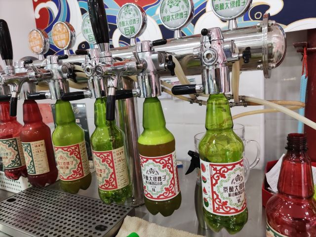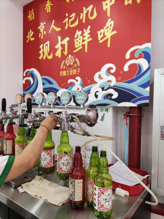 算是这一片儿挺大的稻香村了,空间大,货品齐全,售货员多,客流大,有时候早上没开门儿就有不少大妈排队。今天主要是体验这个大绿棒子,早听说北京稻香村开始卖散打精酿了,一直没在意,昨天看见哥们儿朋友圈发出来了,赶紧来打酒。目前一共有三种,黄啤和白啤是固定有的,还一种脆沙瓤西瓜口味属于时令品种,就这阵儿有,所以得抓紧体验。是北京人记忆中的散打鲜啤,麦汁浓度和酒精度都不低,确实有大绿棒子的劲头儿。只是价格可比大绿棒子翻了十倍,年轻时候是因为喝不起白酒才喜欢喝啤酒,现在想喝啤酒也快喝不起了🤪🤪