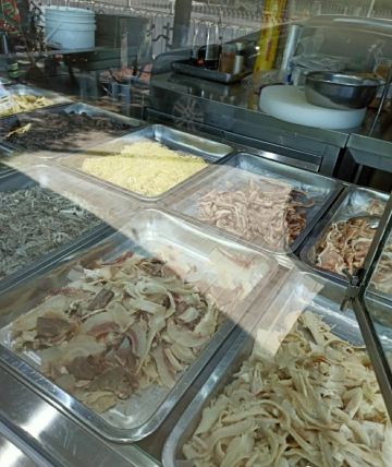 爽辣棒棒鸡店铺临街,logo很醒目。棒棒鸡是百年四川荥经名菜,风味独特、做工精细、选料考究,精选纯土公鸡,与其他拌菜大有区别,不含姜、葱、蒜、酱油,是由原汁鸡汤加祖传配方精制而成,与世面上的所谓白斩鸡是有本质区别的。独具风格,麻、辣、鲜、香、甜一应俱全,口感好,真正色、香、味皆具,看之勾欲,食之回味,久品不厌。 特色钵钵鸡,辣的爽,令人回味无穷;无骨凤爪,虽然无骨,但筋还全在里面,吃起来特有嚼头,辣料也很香;所有的出自一人调制之手,但味道完全不同,辣的是各有各的味,值得来尝试。