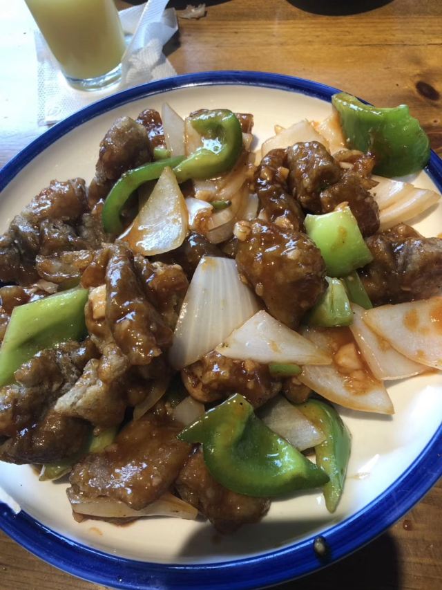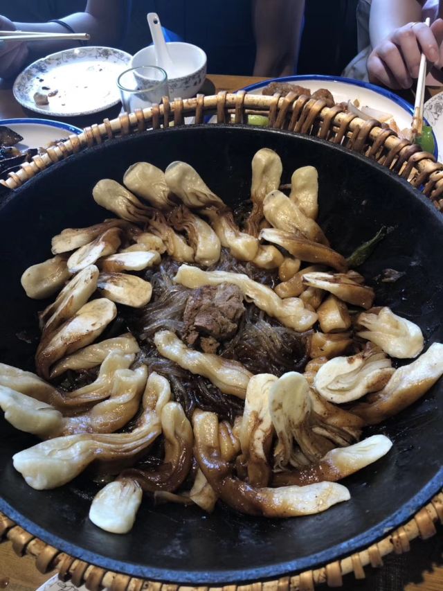 出差到平谷两周,朋友过来相聚,搜到这家平谷人气不错的铁锅炖,中午就开始排队,但是叫号和维持秩序的服务员明显人手不够,本来前面还有5桌,看到有一桌走了也没有人也就坐下了,点的排骨锅、地三鲜、拆骨肉等六个菜,味道总体不错,就是服务有一些跟不上