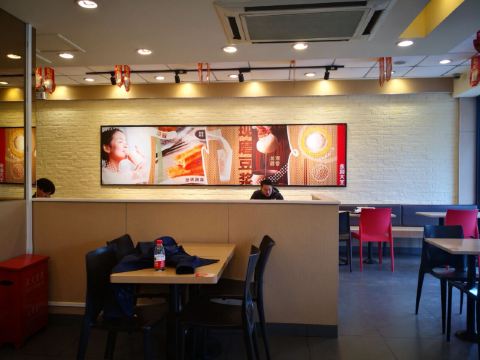 永和大王是一家中式快餐连锁店,很受食客们欢迎。食物种类很多,包子、盖饭、馄饨都不错,早上一杯热腾腾的豆浆和新鲜酥脆的油条,营养充实;晚上一碗清淡爽口的粥或香喷喷的牛肉面,吃着很舒服,这里的豆浆和卤肉饭很有名气,豆浆豆香味很浓,虽然价格不便宜,但是味道都不错。 军博店环境不错,干净整洁,是个解决工作餐、朋友小聚的好地方。
