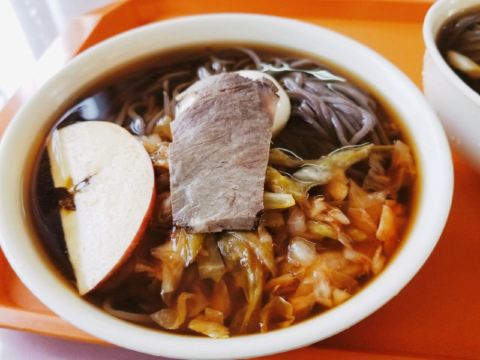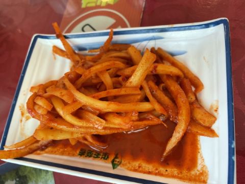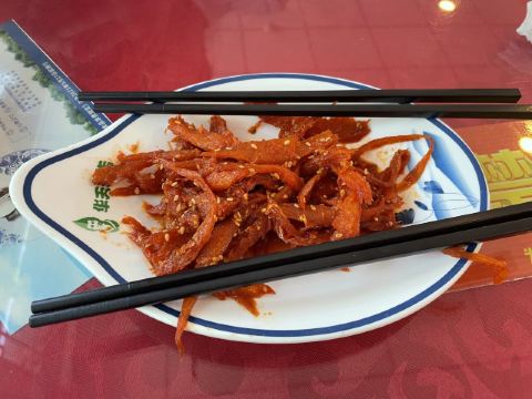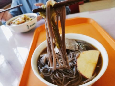 归属华天餐饮旗下。传统的装修风格,用餐环境很干净,服务员站一边负责清理桌子,顾客在点餐台点餐付款,自取拿小票和凉菜,凭小票自己去窗口取冷面和羊肉串。冷面大凉爽劲道,用的是韧劲的荞麦面,面很滑溜筋道。食材新鲜,冷面当场制作,现压现吃。