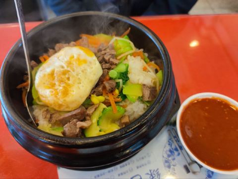 冷面,拌辣牛肉,羊肉串,桔梗,白醋,明太鱼,四季烤麸,石锅拌饭,黄瓜,酸甜裙带菜,延吉冷面,狗肉,辣牛肉,拌桔梗,拌明太鱼,鸡腿石锅拌饭,精品冷面,辣白菜肥牛面