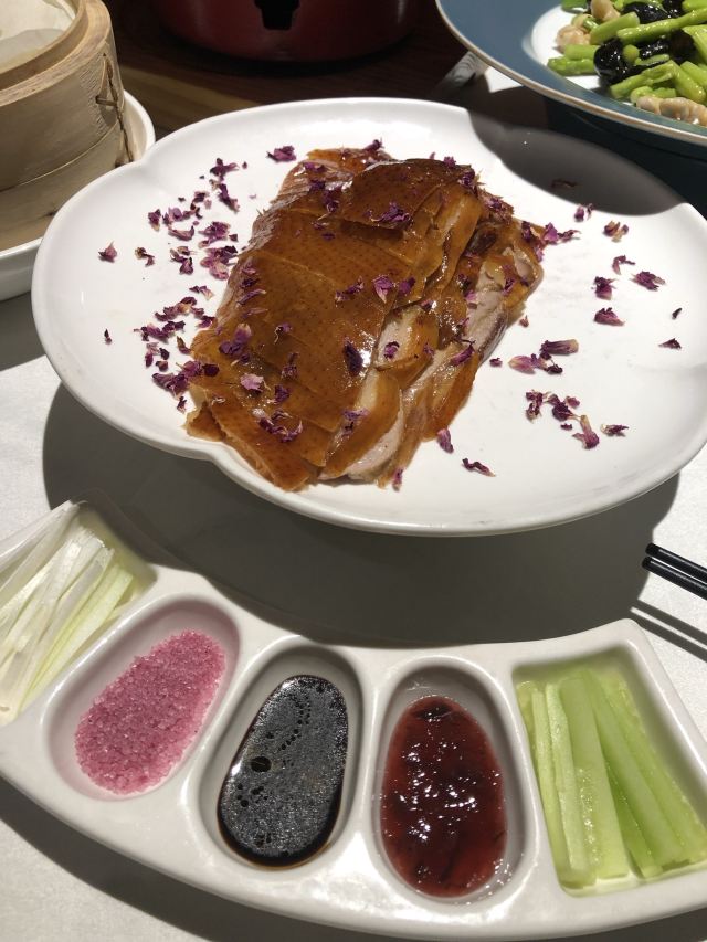 烤鸭鸭皮有点软了,鸭饼有点嚼不动。位置还不错,烤鸭的玫瑰元素很有创意。