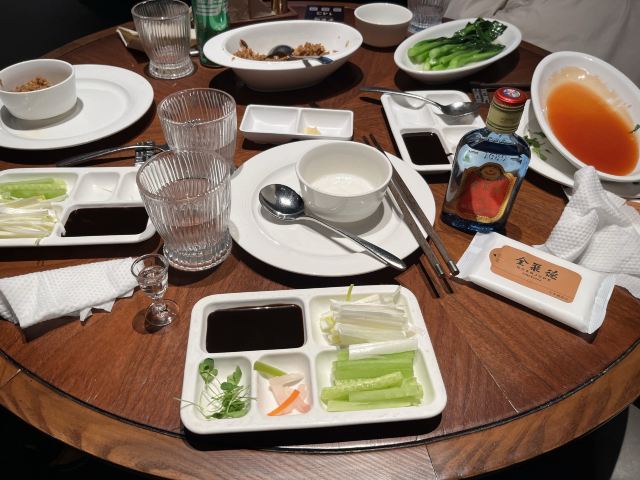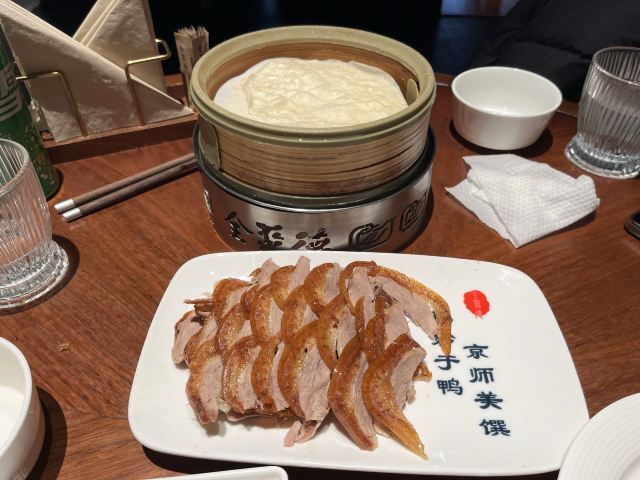 센치한부엉이北京德(北京考雅)是北京旅行中不可或缺的名菜。在韩国也通过各种媒体出名的店铺是北京的高级饭店3个人点了一只鸭子套餐(4人套餐),其他料理也点了一部分,几乎都吃了,留下了一点。鸭子虽然有点咬,但是和辣味的料理一起吃了之后,又过得很好。 将切好的鸭肉放入麦田瓶中,放入葱和黄瓜等蔬菜,放入后放入酱汁中食用,葱的香味和鸭子的淡淡非常相配。 就个人而言,最令人印象深刻的是整个菜肴中的鸭肉加那菲。鸭肝上放了皮,但是这种质地非常疯狂。就个人而言,这是我在全州德吃过的最美味的菜。我吃了之后出来的鸭子头和汤。 食物很好吃,但是我对服务不满意。即使客人不多,工作人员的反应也很慢,而且对所服务的菜肴的解释也很缺乏。有很多便宜的亲切餐厅,不想在这里以不舒服的心情吃。我个人没有再次访问的意向。