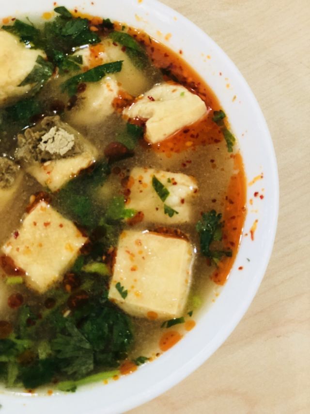白魁老号饭庄前身是东长顺清真饭馆,由创办人白魁,于清乾隆四十五年(1780)在隆福寺庙东侧开业,1957年公私合营,改名为“清真白魁老号饭庄”。 平民美食麻豆腐是北京的特产,用羊油翻炒麻豆腐,加上青豆、韭菜,最后淋上辣椒油,端上桌,在这灰白红绿相间,感受酸醇扑鼻,吃起来细腻可口,就爱这口!但这就是做豆浆,滤去水份后的“下角料”—麻豆腐。