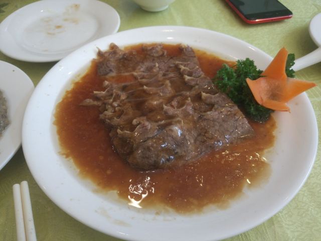 十一放假期间去牛街转了转,午饭时间时来到了这家餐厅。餐厅里面宽敞明亮,干净整洁,里面有不少顾客在吃饭,听说话感觉很多是附近居民和回头客,尤其是回民居多,毕竟是清真餐厅嘛。我们点了一份扒肉条和烧茄子,感觉味道一般,而且上菜速度很慢,价格不便宜,一份扒牛肉条就70多元,但比较有这么多顾客在吃,说明这家老店还是不缺客人的。另外服务很好,热情周到,位置优越,交通方便,是一家不错的老店。