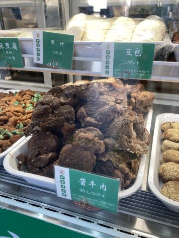 中耀奶油炸糕一般鸡肋。我不知道它为什么叫奶油炸糕。像油条一样的确,也很香。粘了糖口感没多大提升。我以为它像泡芙一样里面有奶油。并没有。艾窝窝腻就是一个团子包着山楂和很多黑芝麻。杏仁豆腐一般。第一口汤惊艳,豆腐不是我认为的豆腐。它的口感胶质,像果冻,但比果冻有嚼劲。羊肉串这四个里面最好吃了。以上四样30¥。他家的山楂糕可以。果子干果子冰半份芸豆卷共50¥。芸豆卷一般。我对糕点不包期望了。就算里面有山楂都救不了它。有点干。果子冰吧,里面是杏仁肉,还有柿饼、藕片,还有一个我不知道是什么。冰冰的但是没有我想的那么冰。五分打三分,不会回点的。可能是勺子小的缘故,所以没有平常喝冷饮的痛快感(老实说我真的挺想端起碗来喝的)奶酪的也三分。因为杏仁豆腐的汤所以我想尝杏仁水。但它不是。它像黑芝麻糊一样稠的。烫,有果干。建议放凉一会再喝。顶饱。香蕉干软的,山楂酸。萝卜青菜各有所爱。这个杏仁茶还行。黑芝麻的香,夹杂着杏仁的清甜和苦。20¥一碗。