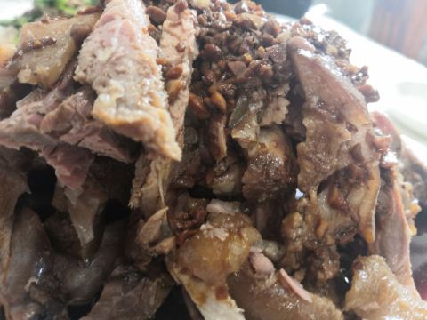 想吃肘子,北京同事带来了这家,酒香不怕巷深啊! 【环境】胡同里的四合院内,绝对的在地家常美食。 【口味】他家的蒜泥肘子和满大街的酱肘子完全不同,自家独创,有点像蒜泥白肉的做法,虽然不像酱肘子般软糯,但绝不费呀,且不会觉得太油腻。馒头片让我想起了小时候家里会常做,蘸着绵白糖吃会上瘾啊。 【服务】没有倚老卖老,客人再多招呼起来也是非常的积极主动,超级棒