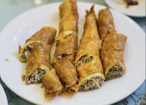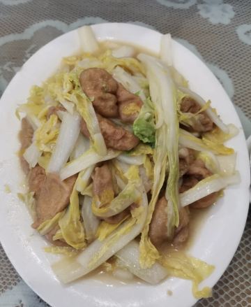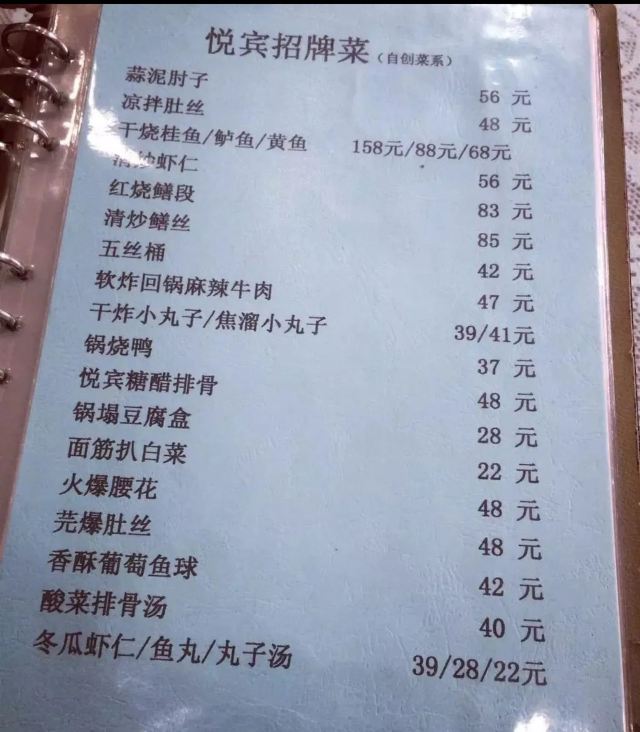 蒜泥肘子,五丝桶,面筋扒白菜,锅塌豆腐盒,糖醋排骨,干烧黄鱼,糖醋里脊,炸馒头片,软炸回锅麻辣牛肉,鸡蛋馒头片,清炒虾仁,冬瓜粉丝鱼丸汤