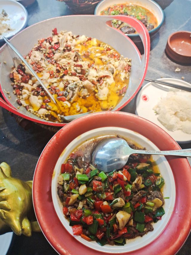 农家小炒肉,小炒黄牛肉,香煎臭鳜鱼,砂锅扁豆丝,牛蛙,手撕圆白菜,野山椒炒牛肉丝,剁椒鱼头,干锅脆笋,擂椒皮蛋,米豆腐,臭鳜鱼,手撕杏鲍菇,双色鱼头,虎皮尖椒,洞庭飘香鸡,麻的跳牛蛙,小炒肉