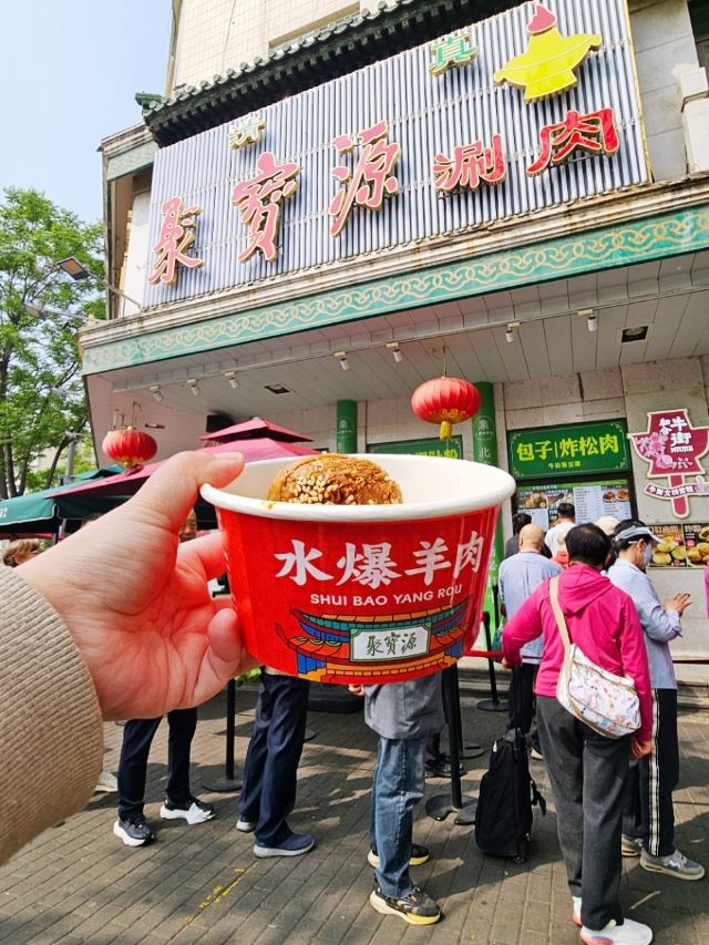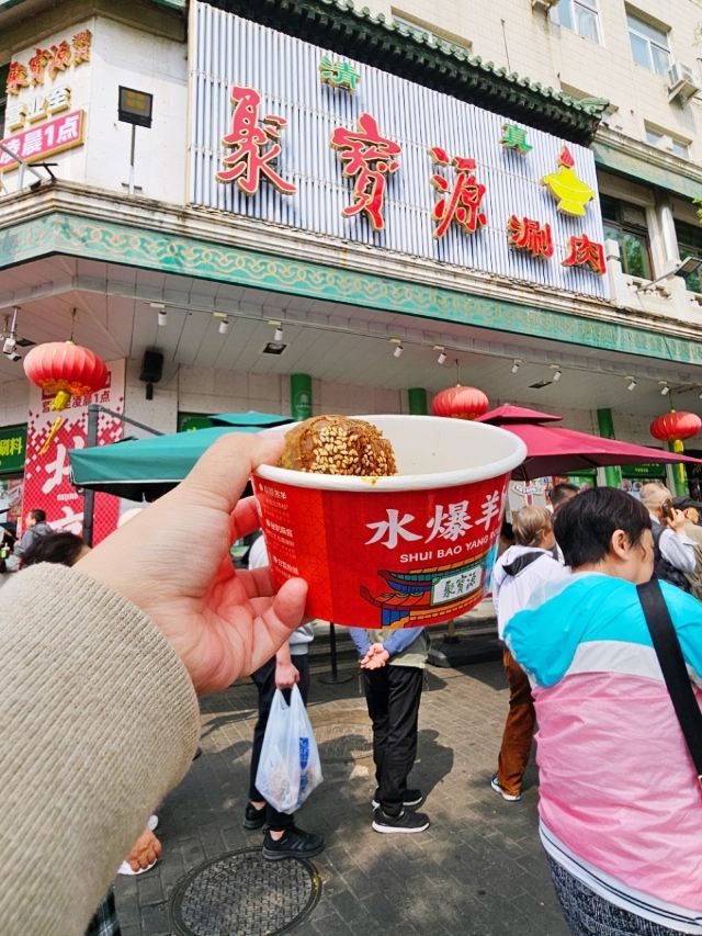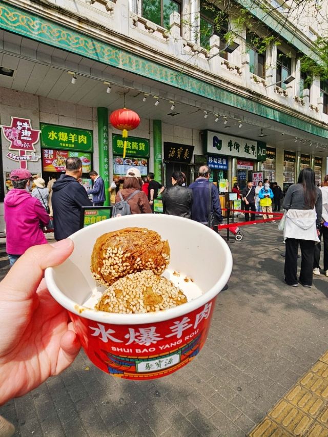 Niu Jie Ju Bao Yuan (Niujie Original Branch)牛街排队王!清真水爆羊肉太绝了🔥 为了聚宝源创始店档口的水爆羊肉,排队也值得! 老北京传统水爆工艺,锁住羊肉原汁原味,180天羔羊肉嫩到离谱,搭配绿豆粉丝,裹上20年配方麻酱料,鲜香味直接在嘴里炸开! 正宗清真美食,坚守真材实料,创始人三十余年坚持,只为一口鲜美好羊肉,老北京人从小吃到大的味道~ 镇店之宝一品烧饼酥香可口,是牛街超火伴手礼!牛肉大葱包子现蒸现卖,肉馅饱满超解馋~电烤羊肉串鲜嫩不腻,一口沦陷! 来京必吃清单TOP1,错过真的会哭!