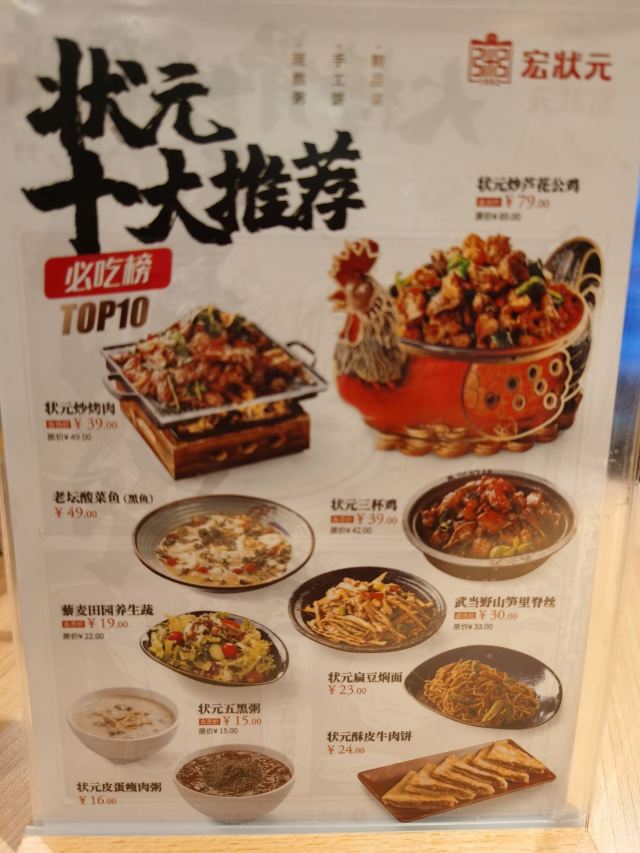 状元皮蛋瘦肉,状元扁豆焖面,千层韭菜猪肉饼,金捞芒果冰粥,莲子鲜芋冰粥,状元精品炒合菜,麻酱甜饼,宫保鸡丁,大麦红枣山药粥,状元五黑粥,扁豆焖面,双椒焖面,千层肉饼,十毂养生粥,状元炒合菜,菠菜鸡茸粥,皮蛋瘦肉粥,状生滚猪肝粥