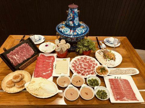 东来顺铜锅炭火涮羊肉,东来顺传统秘制麻酱调料,东来顺麻酱烧饼,酸梅汤,特选精品肥牛,传统手切鲜羊肉,蔬菜大拼,东来顺外脊羊肉,羊毛肚,宽粉,黑毛肚,香辣小料,传统麻酱烧饼,特级s外脊肥牛,熬制酸梅汤,东来顺秘制麻酱,蔬菜拼盘