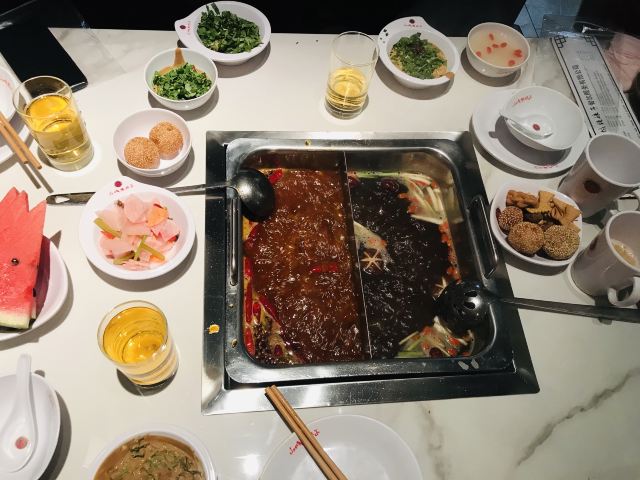 很推荐这家火锅店,主要是因为性价比超高,锅底虽然没有单人小锅,但不贵。菜也是正常价,欢迎来这里涮菜吃。最令人吃惊的是蘸料自助,零食,甜品,水果,啥都有,而且种类特别多,花8块钱吃个蘸料自助都能吃饱了。