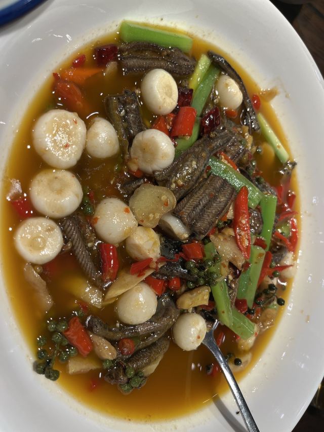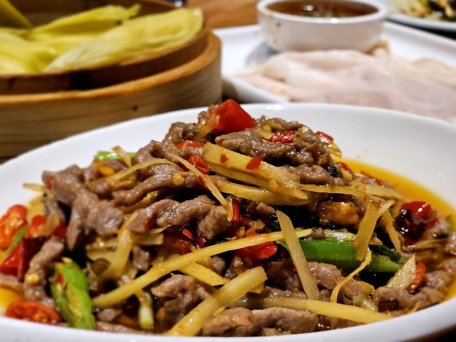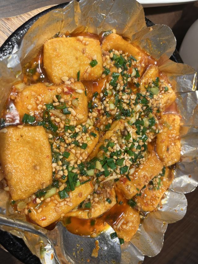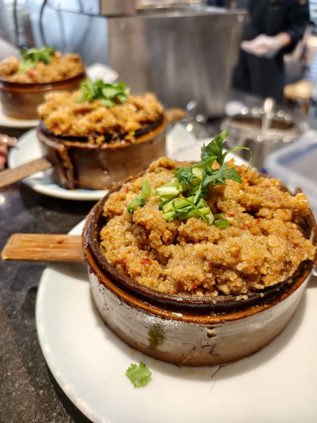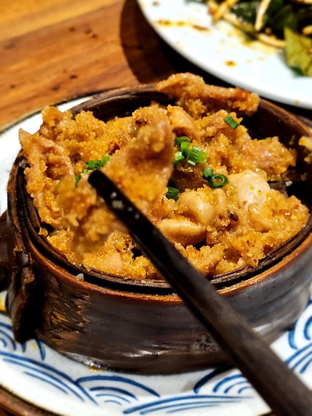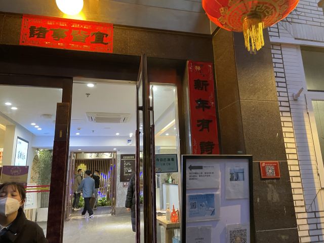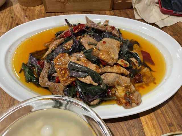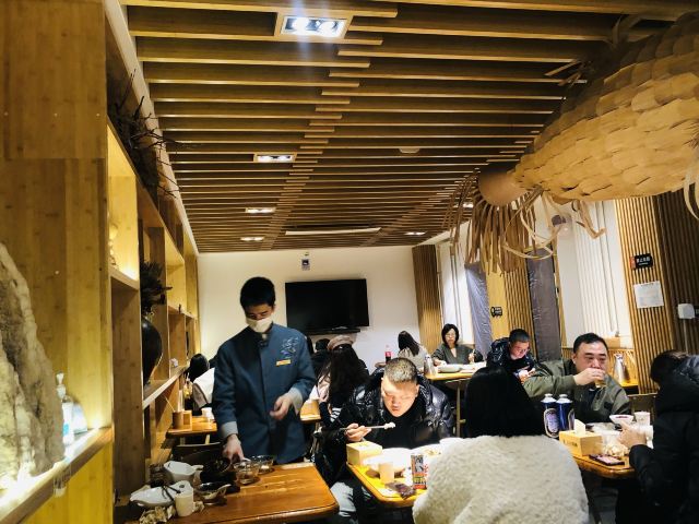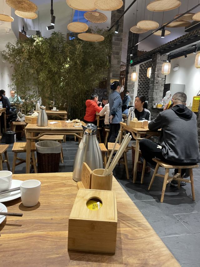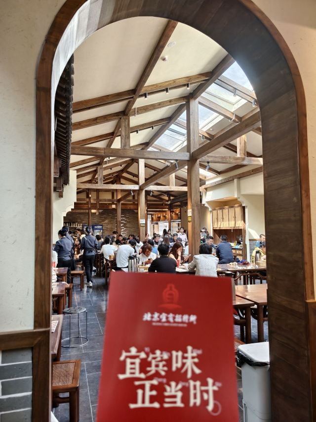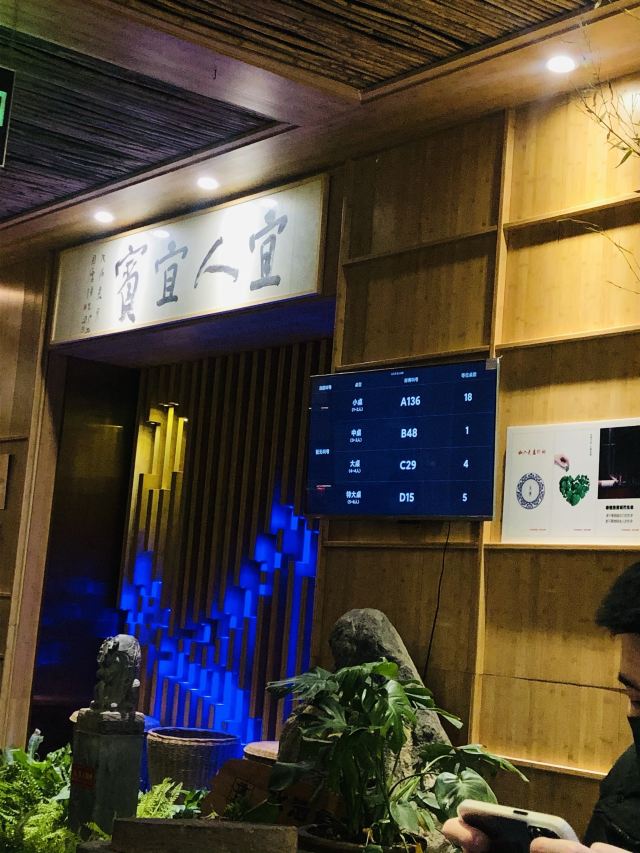 蟹黄汤喵🎉第二次来吃宜宾招待所啦,没想到因为排队人多,很多人取了号不在,中间跳号多个,等了不到15分钟就到我们啦,工作日吃饭的福利。点了第一次没吃到的很多菜,味道真的不错。 🌲环境: 招待所一楼餐厅,如果过饭点来,人会少很多。这次是17点来排的大桌,门口已经有很多人,进了店里,发现里面排队的竹蹬没什么人坐,直接坐进去等。叫号的小姐姐声音很大,不用担心过号。 👩🏻🦰服务: 听服务员的口音,应该都是四川的,桌上扫码点餐,不太需要什么服务,有些菜上来会非常快,毛血旺就要多等会。 🍎菜品: |李庄白肉^八片一份,筷子上卷起来吃,沾上调料一口很满足,肉香不腻,肥瘦相间一起正合适; |川香毛血旺^川味十足,辣味够,花椒麻,毛肚、大肠、午餐肉、鸭血、黄喉、豆皮和豆芽,黄喉极嫩; |三江豆腐脑花^碗不大,脑花却很多,嫩嫩的豆腐块,飘满了红油,味道特香; |川香辣子鸡^招牌菜之一,鸡肉炸的刚好,加上特有的麻辣味道,一吃就爱,辣度适中,吃了还想再吃; 粉蒸牛肉 四川特色美食之一,感觉粉蒸牛肉上的米粉会更好吃,辣辣的; |荤燃面^必点菜品,芝麻花生香更明显,比北京绝大部分店要好吃,面条筋道有弹性,再配上特制的辣椒油和各种调料,吃着特香。
