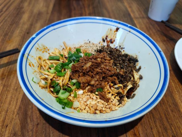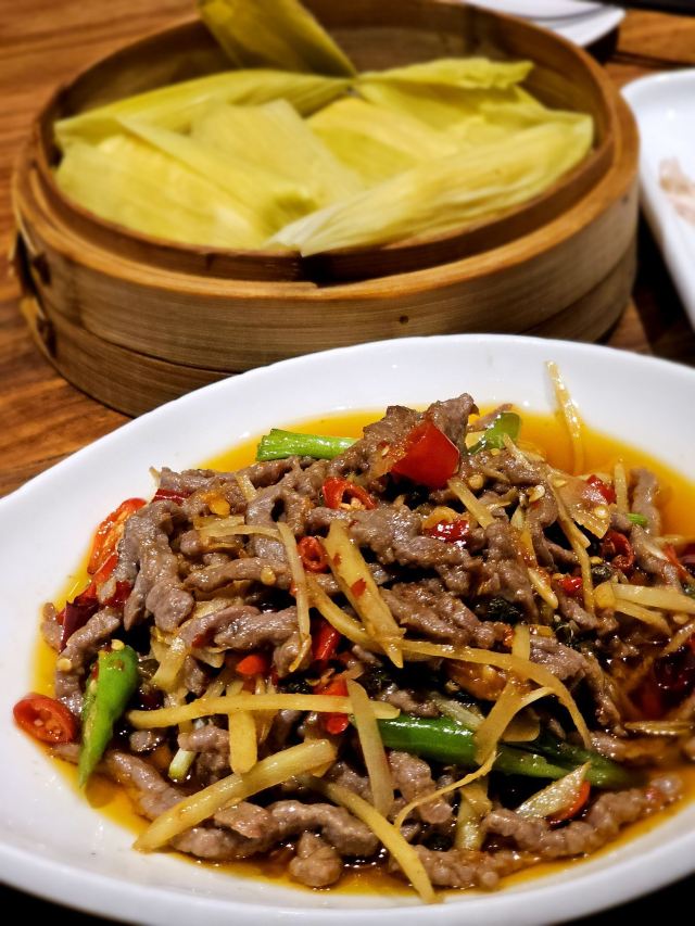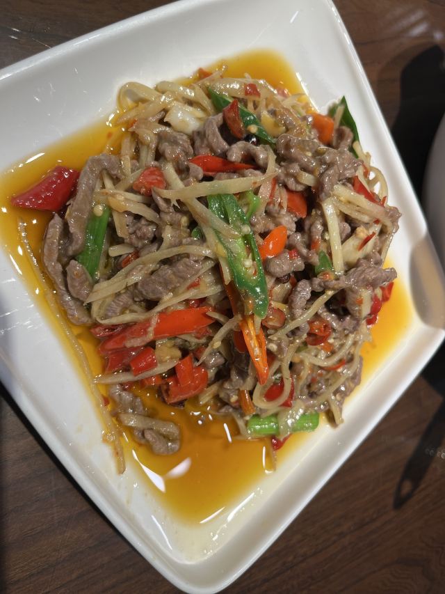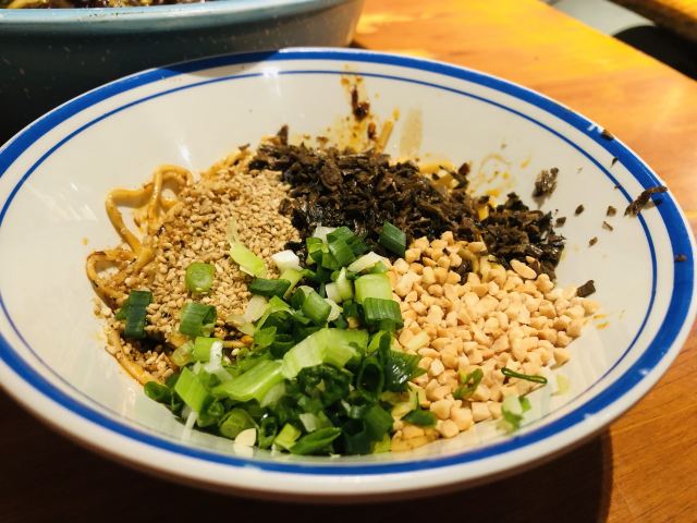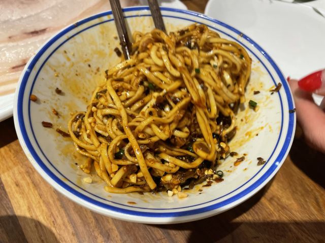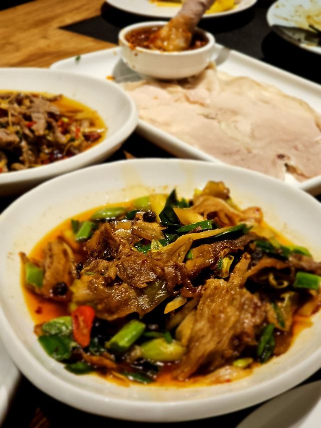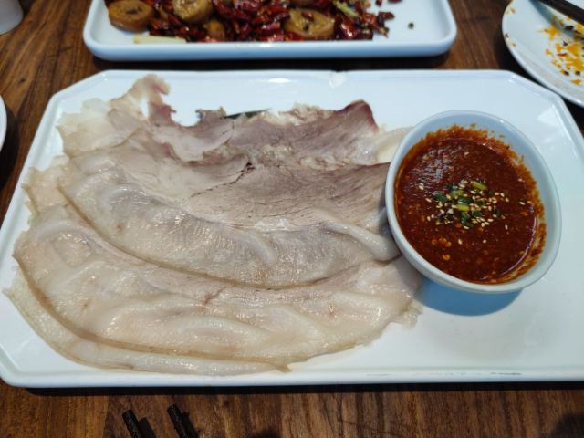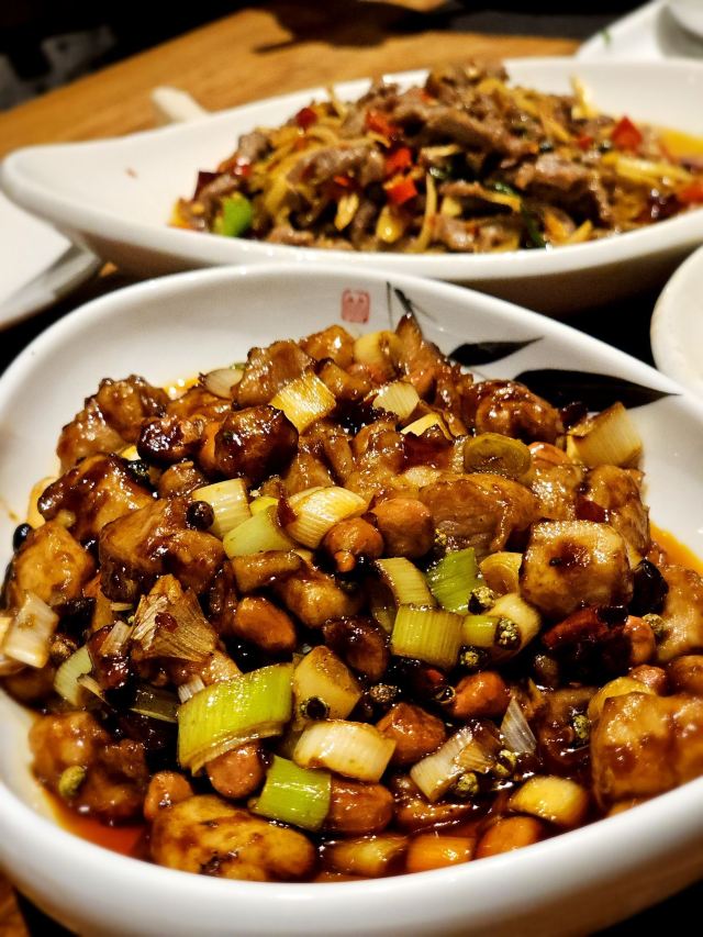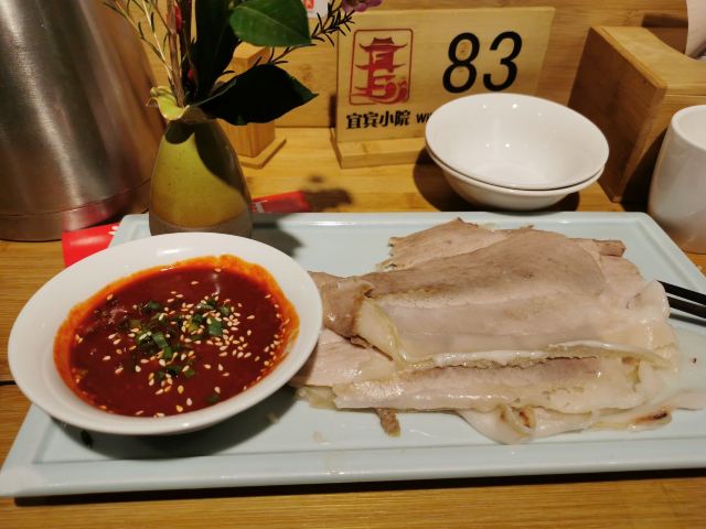 BEI JING YI BIN ZHAO DAI SUO🎉第二次来吃宜宾招待所啦,没想到因为排队人多,很多人取了号不在,中间跳号多个,等了不到15分钟就到我们啦,工作日吃饭的福利。点了第一次没吃到的很多菜,味道真的不错。 🌲环境: 招待所一楼餐厅,如果过饭点来,人会少很多。这次是17点来排的大桌,门口已经有很多人,进了店里,发现里面排队的竹蹬没什么人坐,直接坐进去等。叫号的小姐姐声音很大,不用担心过号。 👩🏻🦰服务: 听服务员的口音,应该都是四川的,桌上扫码点餐,不太需要什么服务,有些菜上来会非常快,毛血旺就要多等会。 🍎菜品: |李庄白肉^八片一份,筷子上卷起来吃,沾上调料一口很满足,肉香不腻,肥瘦相间一起正合适; |川香毛血旺^川味十足,辣味够,花椒麻,毛肚、大肠、午餐肉、鸭血、黄喉、豆皮和豆芽,黄喉极嫩; |三江豆腐脑花^碗不大,脑花却很多,嫩嫩的豆腐块,飘满了红油,味道特香; |川香辣子鸡^招牌菜之一,鸡肉炸的刚好,加上特有的麻辣味道,一吃就爱,辣度适中,吃了还想再吃; 粉蒸牛肉 四川特色美食之一,感觉粉蒸牛肉上的米粉会更好吃,辣辣的; |荤燃面^必点菜品,芝麻花生香更明显,比北京绝大部分店要好吃,面条筋道有弹性,再配上特制的辣椒油和各种调料,吃着特香。