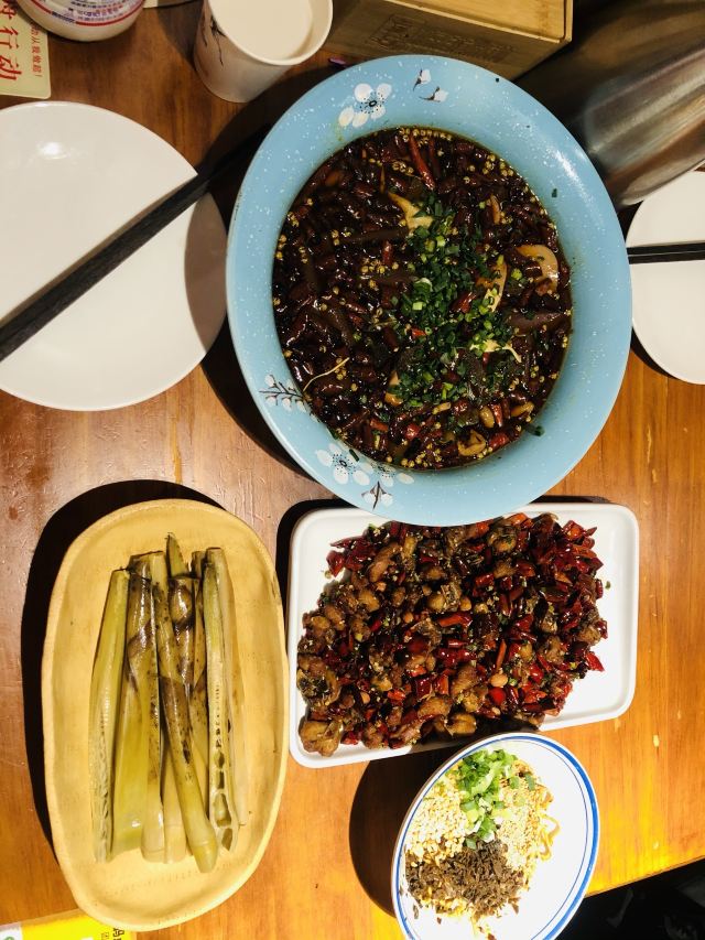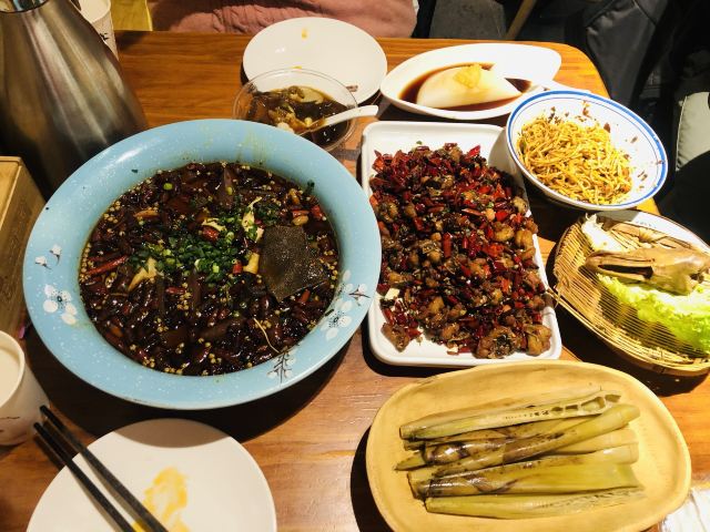 宜宾燃面,辣子鸡,辣子肥肠,干煸牛绒丝,毛血旺,老汤蹄花,红糖冰粉,宜宾燃抄手,粉蒸肉,宫保鸡丁,盐煎肉,夫妻肺片,水煮牛肉,烧椒皮蛋,火爆腰花,魔芋烧鸭,水煮鱼,川北凉粉,麻辣鱼,凉拌折耳根,鱼香肉丝,茄子烧豆角,酸菜鱼,仔椒乌鸡丁,血皮菜炒猪肝,青菜酥肉汤,岷山香辣鱼