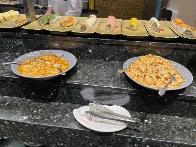 afansu该餐厅主打特色是高空景致,硬要比餐食品质,确实是餐厅的弱项,尤其还是在非主题美食节的时候光顾,菜品选择余地实在有限。