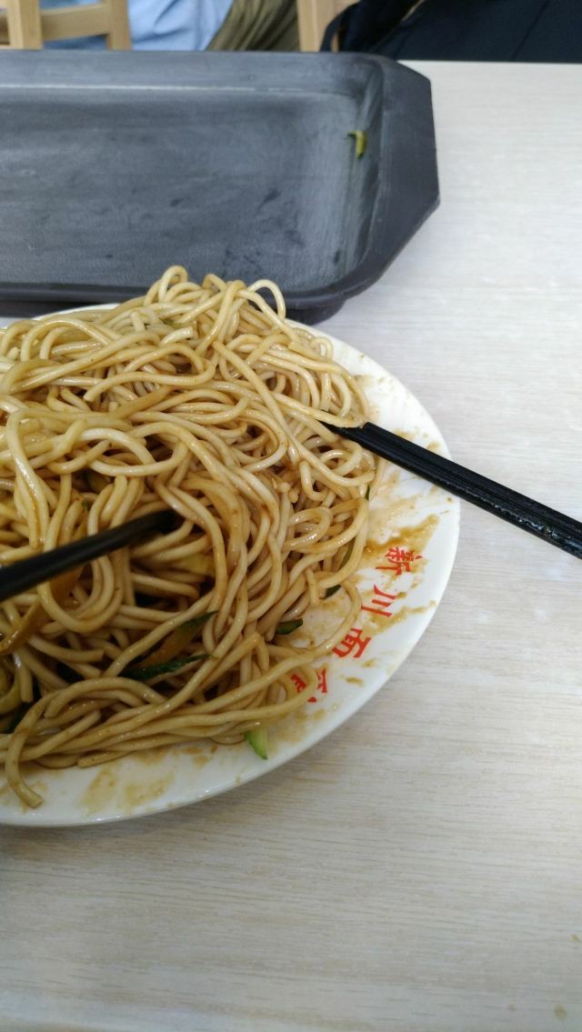 HuaTian Xin Chuan Noodles (Yuetan)现在新川面馆有好多门店,有时候一条街上就有两家,今天是去逛大钟寺,完事儿骑车慢慢溜达回家,其实也才十点半,没到饭点儿,走半路看见一家新川,马上想到凉面了。新川的凉面做得最好,到了饭点儿找座儿可不方便,虽然也能叫外卖,但外卖送到家里味道和口感都有损失。不过确实没到饭点儿,于是就继续往前,骑一会儿路边又有一家新川,这下就有点儿犹豫,更想吃凉面,但还是骑过去了。但是又往前也就几百米,快到月坛的时候,路边又是一家新川,这回终于忍不住了,忍一忍二忍不了三,干脆把车停路边,进来吃面了。 店里不算小,这会儿还没什么人呢,挺清静,一会儿人就该满了。点了个凉面套餐,一盘凉面、一盘酸辣瓜条、一杯饮料,另外又点了个小二,一共37块钱,要是不喝酒的话,还有个21的套餐,一盘凉面、一杯饮料,其实中午吃这么一个也够了。新川的凉面确实好吃,面筋道又不硬,酱料调得恰到好处,味道正好,而且全都能拌到面上,拌好了每根面都能沾满酱汁,吃完以后盘子几乎是干净的,口感、味道都属一流,难怪过一阵儿不吃就会想。我吃别的面一定要放醋、放辣椒油、放蒜汁儿一类的各种调料,只有吃新川的凉面,什么调料都不再额外放,酱汁本身的味儿正好。这酸辣瓜条也很好,脆脆的,酸甜度恰到好处,一道简单的小菜,下酒绝了。 在这种店里,总能看到周边居民的生活百态,就像今儿个,正拌面呢,开门进来一位走路颤巍巍的大爷,跟门口的伙计聊了会儿,打听都有什么吃的,然后去前台点了两份盖饭、一份水饺,说要打包,估计是给自己和老伴儿张罗的午饭,然后就坐在门口等。一会儿大爷看旁边有人喝汽水儿,许是馋了,问伙计那个多少钱,听说5块,大爷拿出现金交给伙计,让伙计去给买过来,然后就坐那儿喝。喝完了大爷应该是等急了,大声喊着问什么时候能好,后面直接过来人告诉大爷饭早好了,就是煮饺子慢,大爷听了可能觉得有道理,不再言声,坐着继续等。一会儿盖饭和饺子都好了,打包好有人给送过来,大爷高兴了,大声道着谢出门。说起来大爷胃口不错,两份盖饭、一份饺子,要是俩人吃的话饭量可不小,这也就是大爷每天日常生活的一个片段吧。所以我总是喜欢在小区周边的这种馆子,菜品、环境、服务都接地气儿,不像在商业区、写字楼周围的那种店,充满了行色匆匆和焦头烂额,压抑得很。