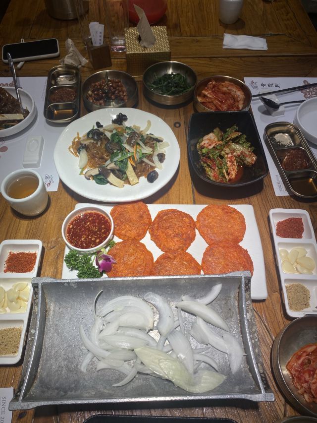 餐厅门口不大,电梯到五层,里面别有洞天,面积不算小。好多年的餐厅了。韩国料理,味道一直很美味。服务员很热情周到,上菜,换篦子都很迅速,麻利。很好吃。