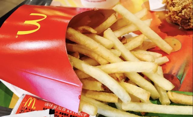 YoYo_3C6S1O8Q麦当劳餐厅和肯德基餐厅一样,属于洋快餐,但是近年来也有中式风格的改变,早餐也有粥、油条啊、煎蛋啊什么的,再也不是只有汉堡可乐的时代了!