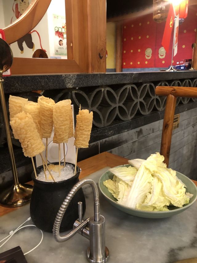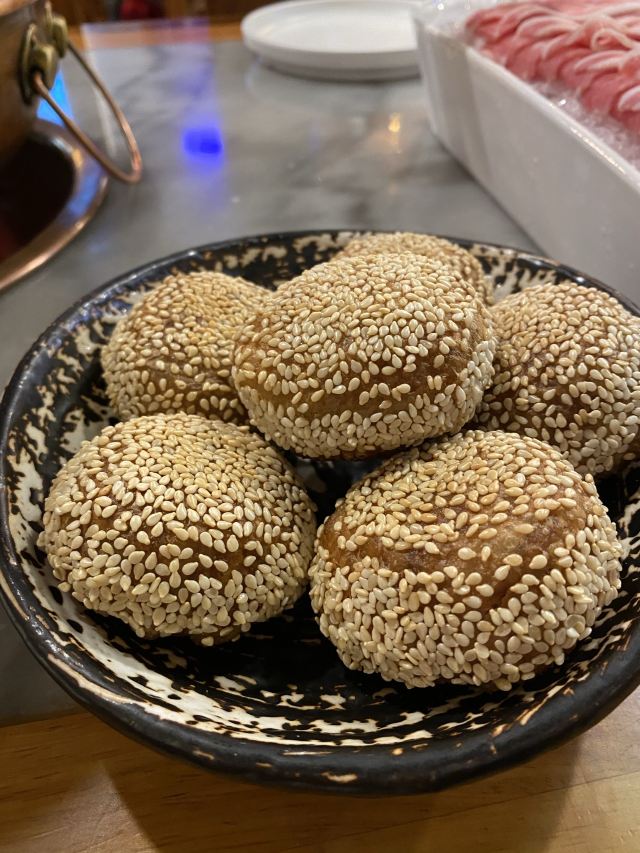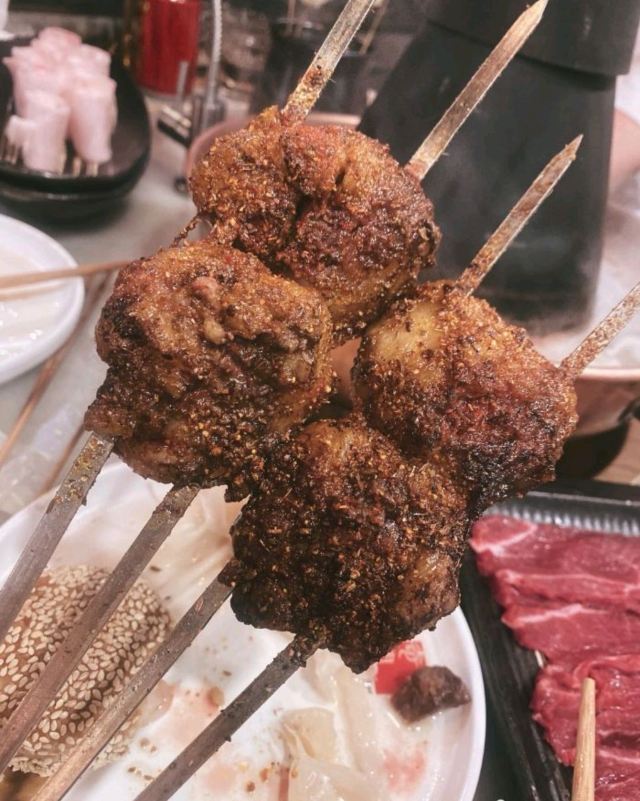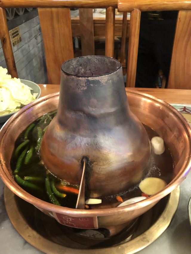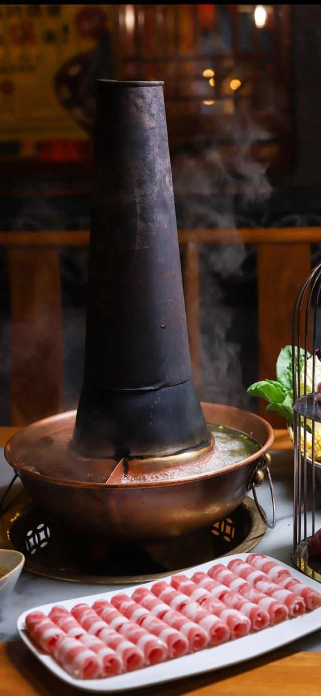 bjbillyjiao北京的传统炭火铜锅还是最喜欢的,尤其是涮个牛羊肉,涮个毛肚。这家就是传统的铜锅,入门儿就有几只蝈蝈儿,这也是小时候老北京的情趣之一。听说老板就是北京人,墙上有老板与明星们的合影 这里的锅底是比较独特的,一半是传统的清汤,一半是藤椒口味儿,那种略辣带麻的感觉,很独特,试了试,套餐里的高钙羊肉、金牌肥牛涮这种口味最适合,连肉带汁,已经不需要麻酱底料了;手切鲜羊肉,很嫩,基本七八下就熟,裹着传统的麻酱底料更香。这家的麻酱咸淡、浓稠度都很好,如果喜欢更咸口儿的,可以在小料区再加腐乳、韭菜花儿等。糖蒜好吃,妥妥的那个味道。麻酱火烧,吃涮肉必来,酥酥脆脆,饿了可以先来个垫底。酸梅汁也不错,不甜,酸酸的,与涮肉搭配,很爽口 看了看菜单,还有羊蝎子,有机会一定要来尝尝