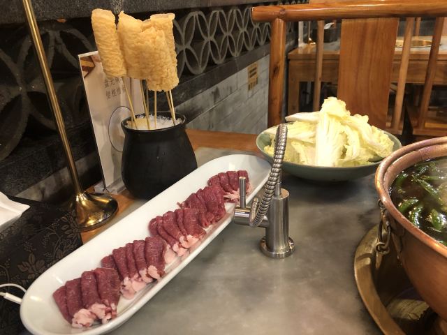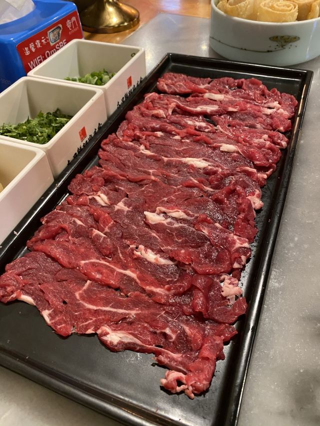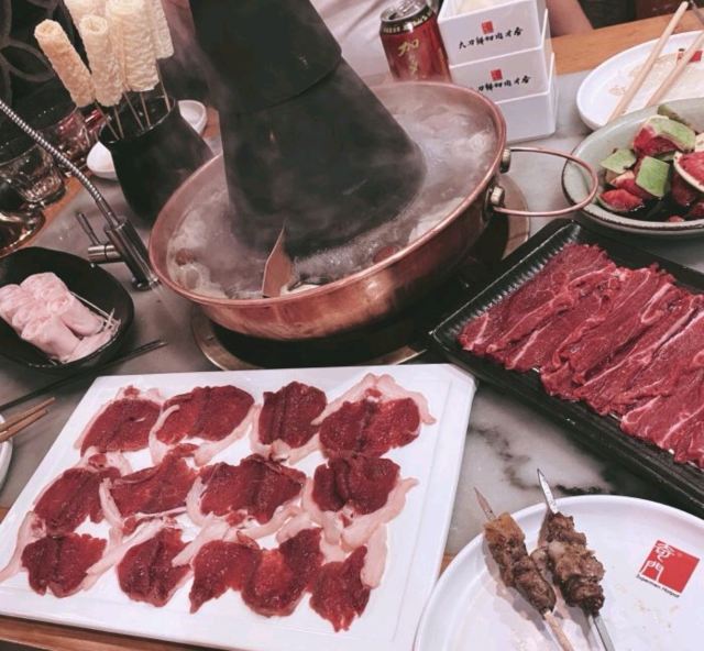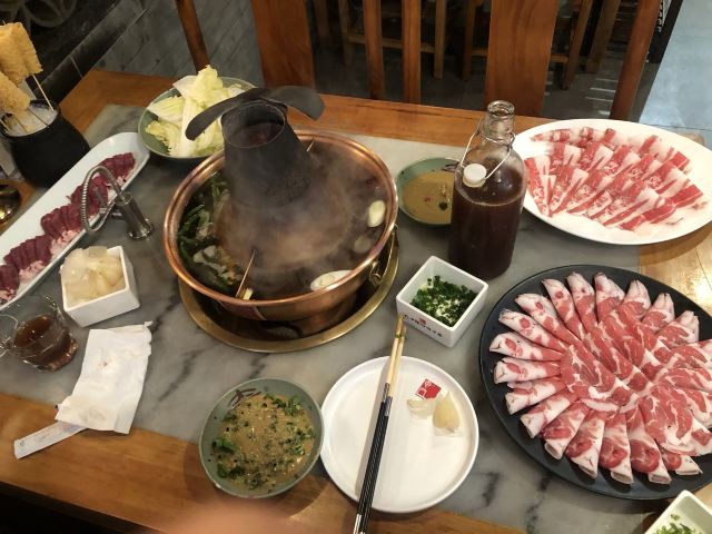奇门涮肉坊是簋街一大特色,铜锅炭火够地道,锅底不油腻,小料秘制浓稠鲜香。招牌精品手切羊肉肉质嫩,口感好,看上去食欲大振。