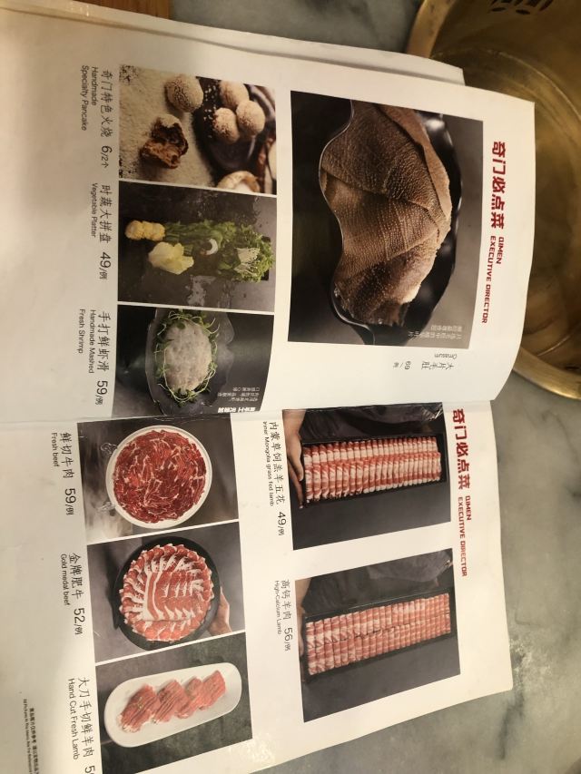 鸳鸯锅,鲜椒锅底,奇门小肋卷,经典双层肥牛,大刀手切鲜羊肉,鲜切花牛腱,奇门高钙羊肉,精品爆肚,麻酱调料,铜锅涮肉,奇门手切鲜羊肉,奇门特色火烧,鲜椒锅,爆肚