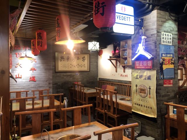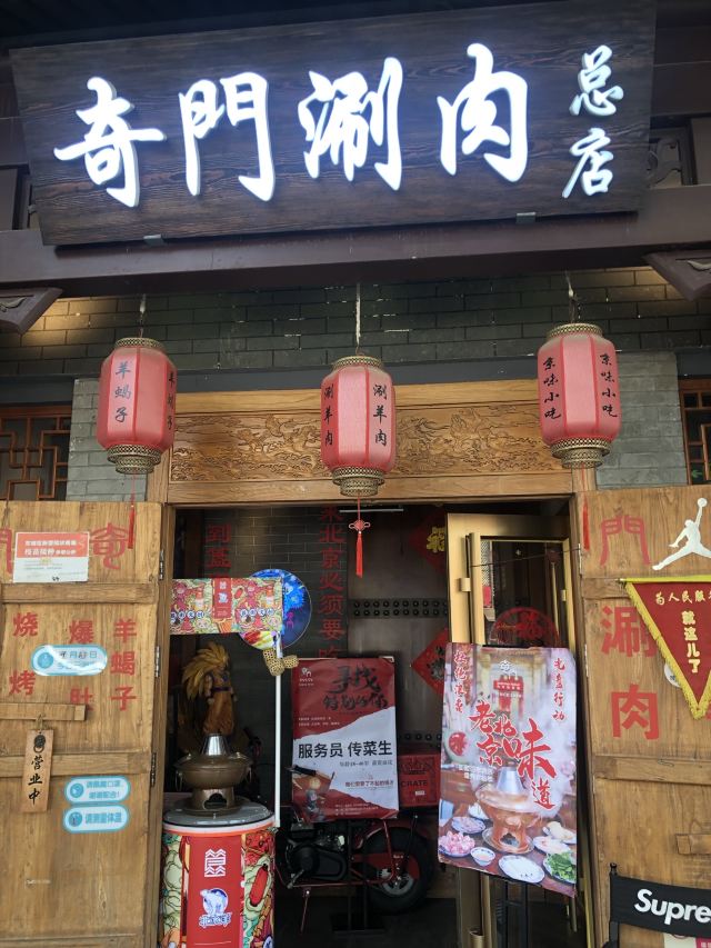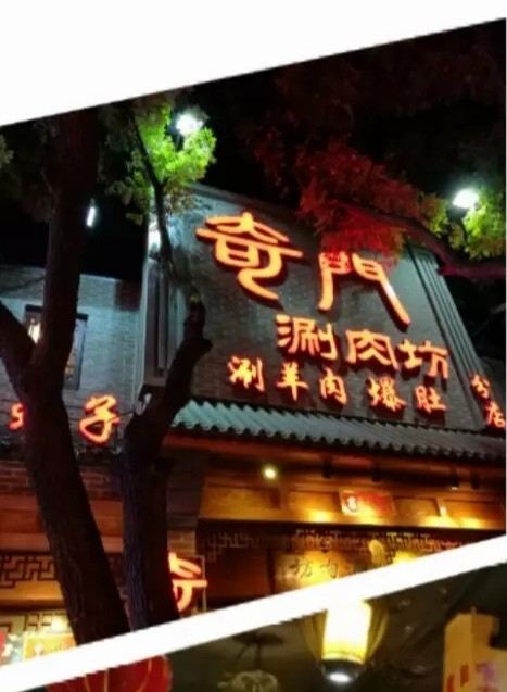 QiMen Instant-Boiled Mutton Restaurant (GuiJie Fen)北京的传统炭火铜锅还是最喜欢的,尤其是涮个牛羊肉,涮个毛肚。这家就是传统的铜锅,入门儿就有几只蝈蝈儿,这也是小时候老北京的情趣之一。听说老板就是北京人,墙上有老板与明星们的合影 这里的锅底是比较独特的,一半是传统的清汤,一半是藤椒口味儿,那种略辣带麻的感觉,很独特,试了试,套餐里的高钙羊肉、金牌肥牛涮这种口味最适合,连肉带汁,已经不需要麻酱底料了;手切鲜羊肉,很嫩,基本七八下就熟,裹着传统的麻酱底料更香。这家的麻酱咸淡、浓稠度都很好,如果喜欢更咸口儿的,可以在小料区再加腐乳、韭菜花儿等。糖蒜好吃,妥妥的那个味道。麻酱火烧,吃涮肉必来,酥酥脆脆,饿了可以先来个垫底。酸梅汁也不错,不甜,酸酸的,与涮肉搭配,很爽口 看了看菜单,还有羊蝎子,有机会一定要来尝尝