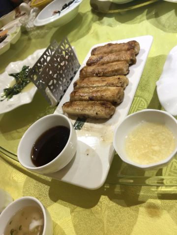 米扑扑葱烧海参,个头饱满,鲜甜滑嫩,入口厚实,味浓鲜美,乌鱼蛋汤,口感丝滑,烤馒头,香喷喷的,颜色好看,九转肥肠,软烂入口,味浓极鲜