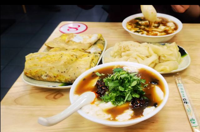 筋饼,豆腐脑,牛筋面,一品凉皮,朝鲜冷面都很好。