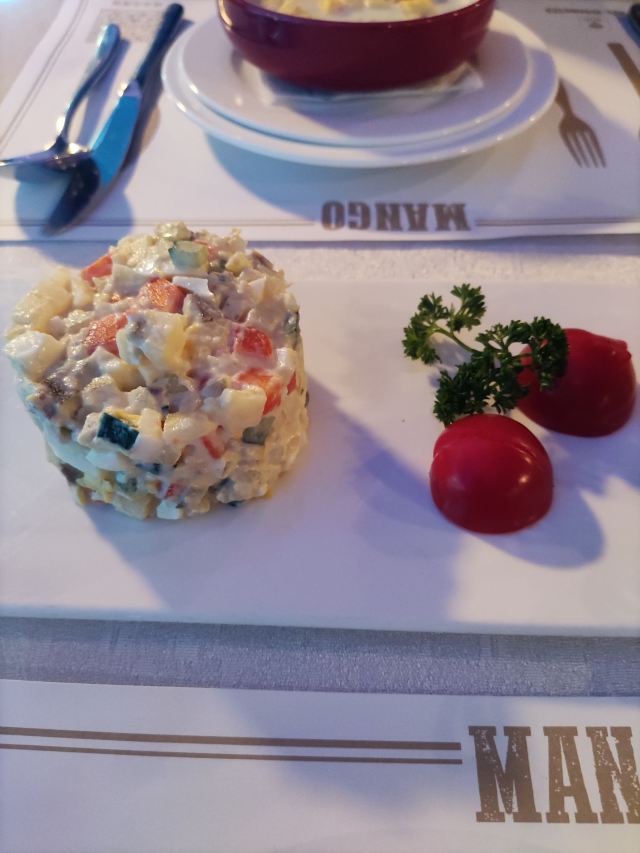 乌克兰罐焖牛肉,红菜汤,奶油蘑菇汤,俄式奶油烤杂拌,蜂蜜蛋糕,什锦烧烤拼盘,首都沙拉,碳烤红鳟鱼,牛肉卷,牛肉玉米塔克,俄罗斯沙拉,蒜蓉烤面包,俄式炸鸡排,烤鳟鱼