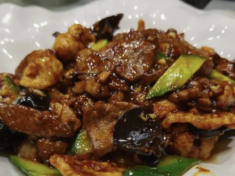 水煮鱼,宫保鸡丁,爽口大拌菜,腐竹虾仁,果木烤鸭,海鲜全家福,铁板黑椒牛柳,丰收全家福,川味水煮肉,蓝莓山药