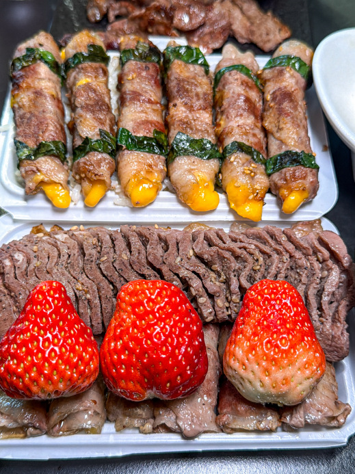 横膈膜,牛舌厚切,盐洋白菜,日式凉面,辣牛小排,五花肉,石锅芝士咖喱饭,牛里脊,隔膜,可尔必思苏打冰,烤香菇,烤小牛排,特上盐味牛舌,烤土豆,牛大肠牛肚拼盘,五花肉定食,盐白菜,黄油烤红薯