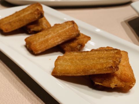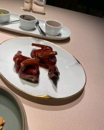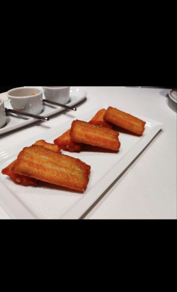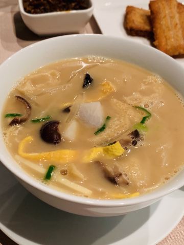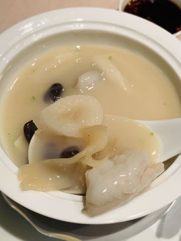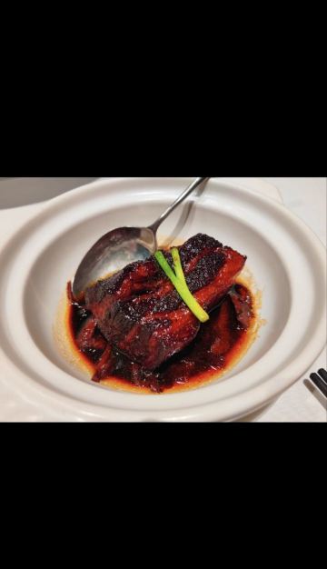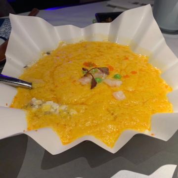 迷失的雪夜环境是低调的奢华,门脸特别不起眼,里面座位之间距离很远,不互相影响,视觉空间很赞,餐具摆放整齐简单。 「黄金脆带鱼」必点,外酥脆嫩,味道刚刚好。 「农家盐卤豆腐煲」原本不想点了,怕菜不够吃加了一份,果然还是很好吃,卤水香味,豆腐很嫩很软,清淡鲜美。 「脆皮妙龄鸽」必点。这个很有特色,皮脆肉嫩多汁,我一口下去汁水四溢,很入味,新荣记的特色美味。 「杏仁饼」餐前赠送的小食,酥脆,菜没上来已经吃完。 「花胶黄鱼羹」必点汤汁浓稠鲜美,花胶软烂,黄鱼肉嫩滑。 「红烧水潺」这个实在是太好吃了!经服务员介绍,这鱼也叫豆腐鱼,名副其实,嫩嫩滑滑,吸溜吸溜肉就入口了,不用嚼,一定要吃。 「捞汁海鲜」很不错的宝贝,海螺肉、鲜贝和蚬子肉,捞汁做得可口,好吃。 「酸菜煮望潮」味道不错,每人一只尝尝,很嫩,就是八爪鱼吧。 「招牌炖汤」汤真的是好喝,里面的排骨肉和凤爪很好吃,青瓜排骨汤。