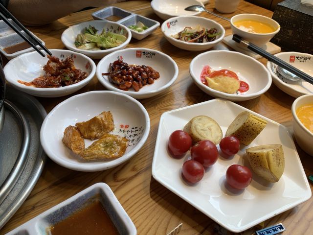 平时和周末都有团购优惠,菜单里也有套餐。店家提供烤肉和北京火锅。送了好多各式小菜,开胃爽口。牛排很赞,肥瘦相间,很嫩。五花肉有些爆了。牛舌不嫩,我们把牛舌烤焦些。
