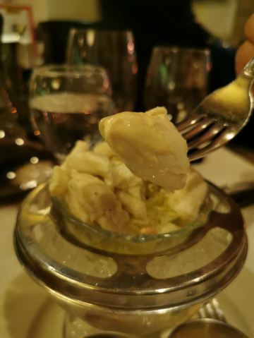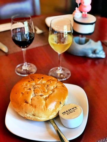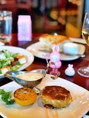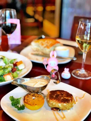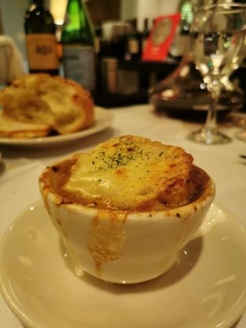 JuliaZhuz临时预约来吃饭,朋友7:30就到了,我送完最后一个蛋糕8:30可算坐上桌从来没过的节疫情当前居然有了仪式感从1月20日之后第一次用BB霜。 之前来这家吃过,印象实话说一般,没想这次留下了极好的印象珍宝蟹肉锦绣杯^蟹肉超级良心餐前面包^由于太久没吃到热面包,抹上黄油一口下肚的瞬间差点泪目烤瑞士奶酪洋葱汤^和|龙虾汤^都很好喝,龙虾汤可以看到一个大蟹钳纽约西冷牛排^心心念念的牛排终于吃到口,一定要大喝几口红酒烩牛肉意大利宽面^太爱了每一根面条都裹满酱汁,一口都不想浪费。配的小菜也很棒,感觉不到是一天复工。吃得超级开心,两瓶葡萄酒轻松下肚。 当晚大概有10桌客人,每桌都在小声聊天,莫名有一种美国往事里餐厅的感觉,服务也很贴心,侍酒师赞。