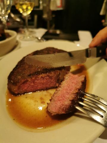 YoYo_6G6S4R9R中国餐厅周#7~~号称帝都四大扒房之首。我感觉和上次来相比,菜价没有涨,菜品保持原来的水准,但服务质量下降了。 这是这次餐厅周最贵的一餐。他家划不划算,真不好说。他家的味道挺不错的,摆盘也不花哨,可以说是美式西餐的典范——牛扒的品质不用说了,本身就是看家菜,烤肉技术也好,不用花里胡哨的各种调味汁,海盐和胡椒就能带出肉的原香。番茄汤、配菜土豆泥都很好吃。他家的菜量也很足:美国一级肉眼,一给就是一磅;珍宝蟹饼几乎就是全蟹肉;就连送的餐包都够三四个人吃的——这顿饭800多,除了贵,口味方面倒没啥毛病。划算的方面就是——如果没有活动,一块牛扒就800多,等于这顿的开胃菜、汤、甜点以及餐酒都是送的。 [服务]服务方面,有不少槽点:1、我要三分熟的牛扒,做成了五成熟;2、上了牛扒之后,服务员没有主动询问我是否需要现磨黑胡椒;3、整个用餐过程中,没有一个服务员询问我的用餐感受;4、上甜品之前,并未清理餐桌上的面包屑——这让我觉得15[%]的服务费有点白花了。当然,好的方面也有:1、主动帮我打包未吃完的餐包;2、送我一张500的代金券。