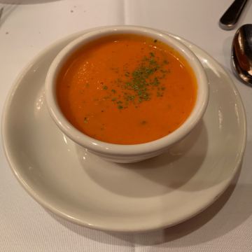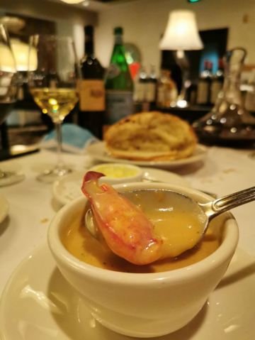 Morton's The Steakhouse临时预约来吃饭,朋友7:30就到了,我送完最后一个蛋糕8:30可算坐上桌从来没过的节疫情当前居然有了仪式感从1月20日之后第一次用BB霜。 之前来这家吃过,印象实话说一般,没想这次留下了极好的印象珍宝蟹肉锦绣杯^蟹肉超级良心餐前面包^由于太久没吃到热面包,抹上黄油一口下肚的瞬间差点泪目烤瑞士奶酪洋葱汤^和|龙虾汤^都很好喝,龙虾汤可以看到一个大蟹钳纽约西冷牛排^心心念念的牛排终于吃到口,一定要大喝几口红酒烩牛肉意大利宽面^太爱了每一根面条都裹满酱汁,一口都不想浪费。配的小菜也很棒,感觉不到是一天复工。吃得超级开心,两瓶葡萄酒轻松下肚。 当晚大概有10桌客人,每桌都在小声聊天,莫名有一种美国往事里餐厅的感觉,服务也很贴心,侍酒师赞。