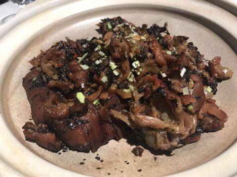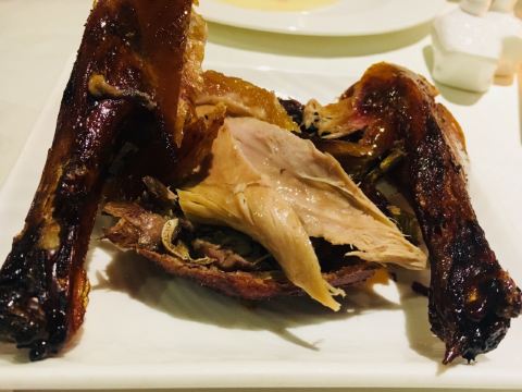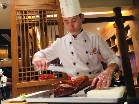 四季民福在望京有两家分店,这家在京客隆的4楼。虽然名气没有全聚德那么大,但很受本地人推崇。 在四季民福,大厨现场烤制的烤鸭自然是必点,油亮亮的鸭子从炉膛中被挑出来,皮酥肉嫩,在食客的面前被片成鸭皮、鸭肉、连皮带肉的几种,鸭腿和鸭头也单独成盘,鸭架可以做成椒盐炸的或与冬笋煲汤,令人回味无穷。