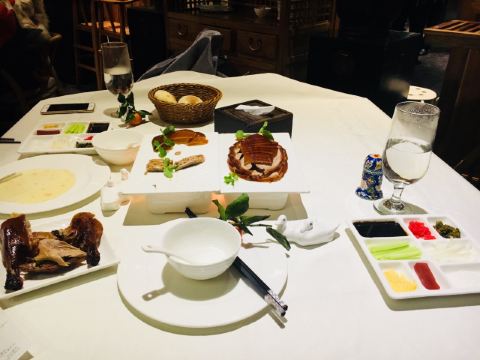 果汁分你一半✔在小区内,旁边是陈经纶中学分校,很安静的京式建筑,桌椅也是中式的,有餐前水果赠送,菜品味道不错,上菜挺快的,人不少,烤鸭好吃,服务员很热情。
