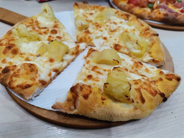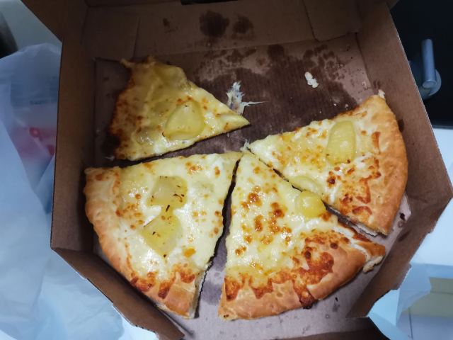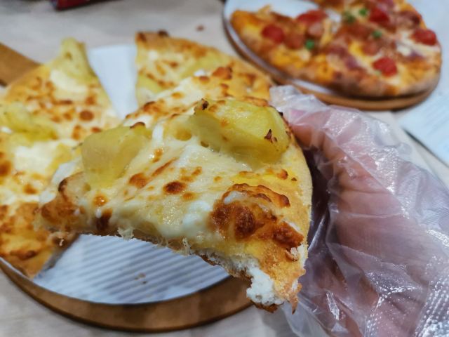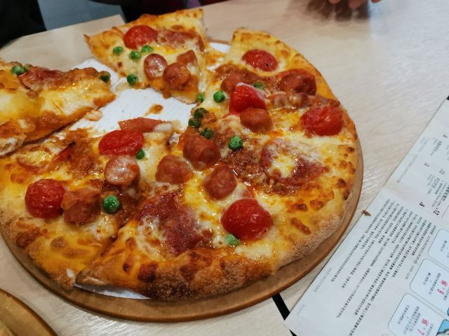 吃了好多次了,闺女不喜欢吃咸蛋黄那个,其他的都喜欢吃。每次必点榴莲披萨,一家三口吃两个披萨太撑,吃一个再点一些小事刚刚好
