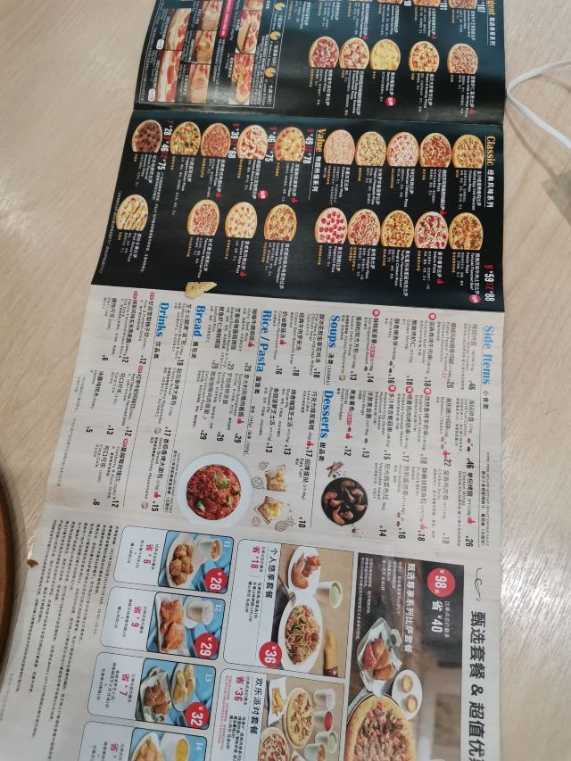培根鲔鱼,豪华尊享比萨,意大利风情肉酱面,美国风情土豆培根比萨,夏威夷风情比萨,法式千层超级豪华,法式黑松露牛肉比萨,果肉榴莲比萨,招牌蛋挞,烤翅拼盘,照烧风味牛肉土豆比萨,小龙虾酥香嫩鸡比萨,番茄四重肉